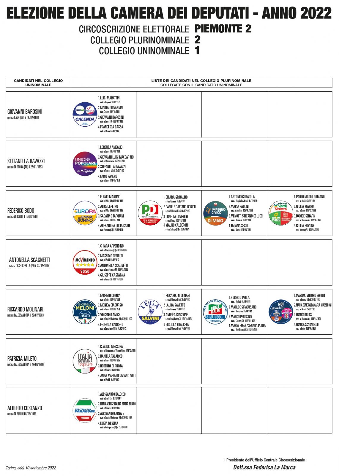 elezione camera dei deputati - Piemonte 2