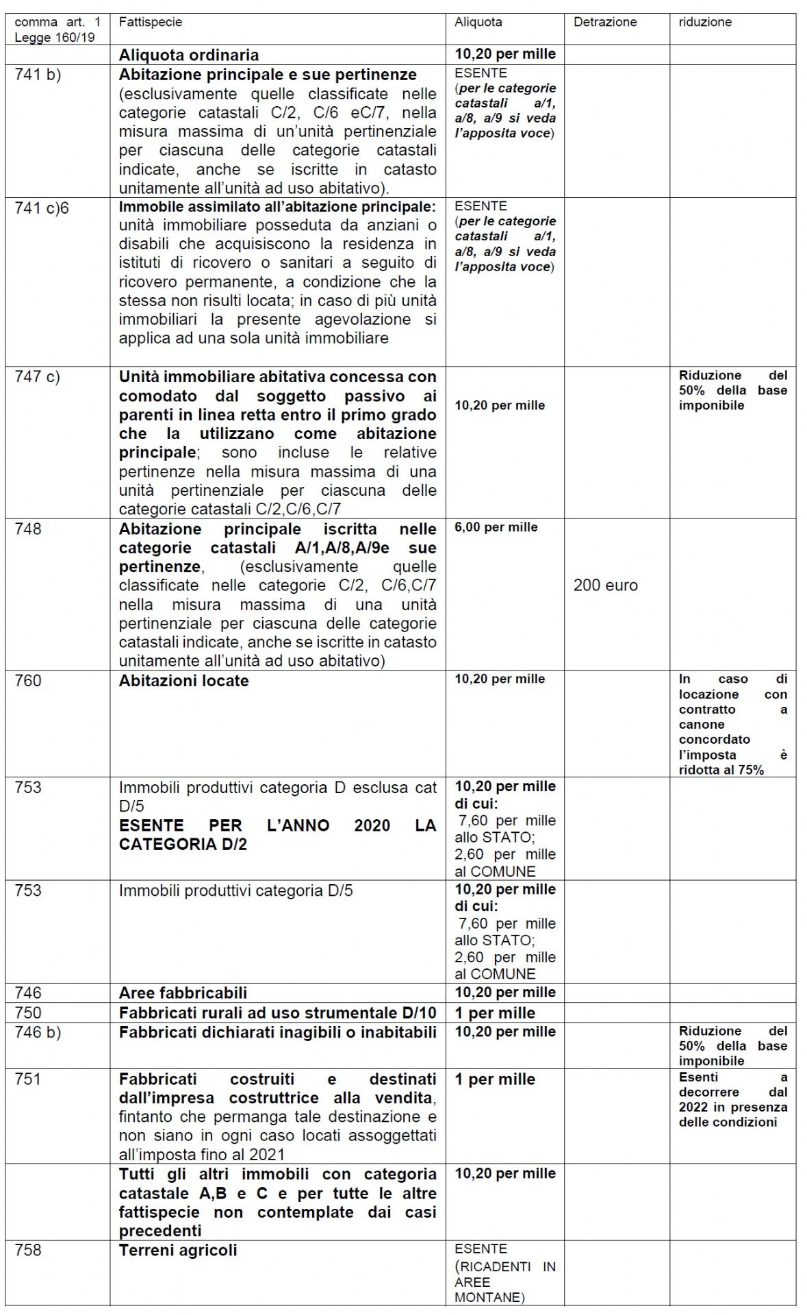 SI ALLEGA TABELLA ALIQUOTE IMU
