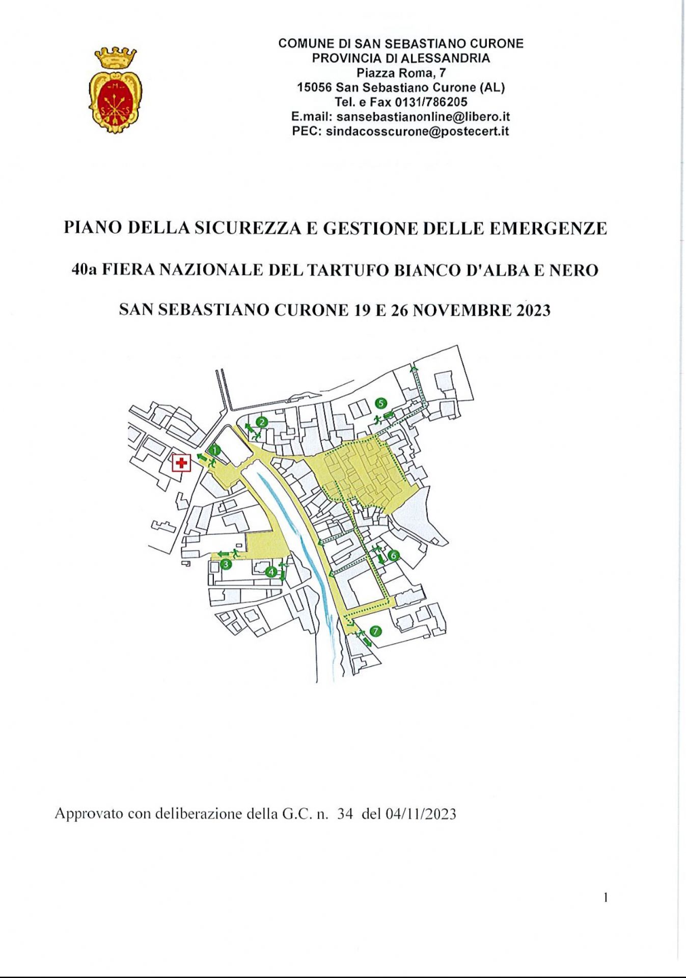 piano della sicurezza e gestioine delle emergenze 40a fiera nazionale del tartufo bianco d'alba e nero che si terra' a san sebastiano curone il 19 e 26 novembre 2023