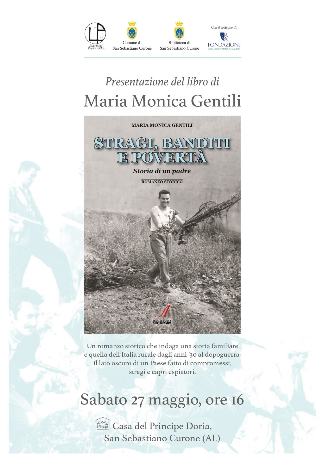 Care amiche e cari amici, siete invitati alla presentazione del libro di Maria Monica Gentili Stragi, banditi e povertà. Storia di un padre