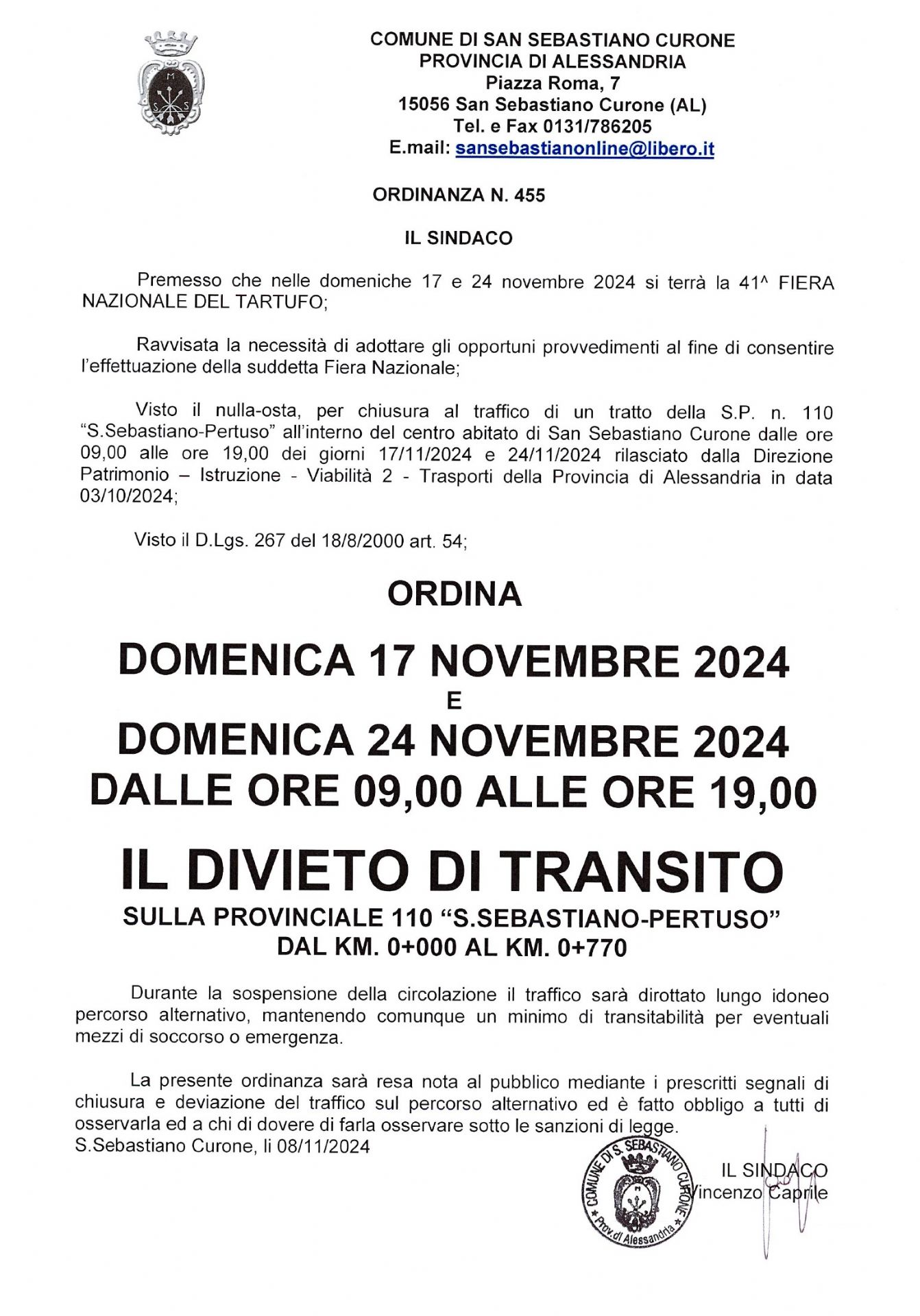 41° fiera nazionale del tartufo - ordinanze sindacali 455 e 456