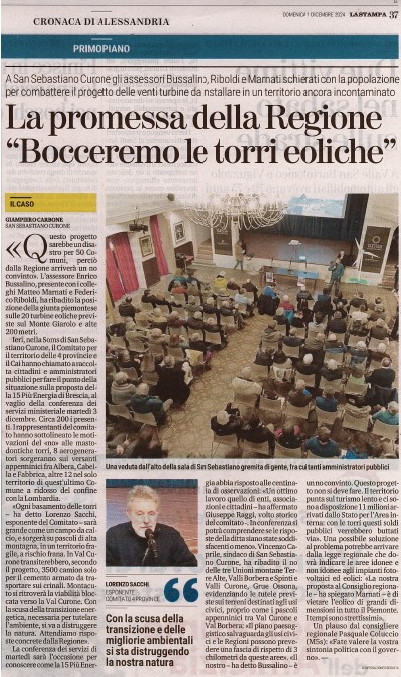 A San Sebastiano Curone gli Assessori Bussalino, Riboldi e Marnati schierati con la popolazione per combattere il progetto delle venti turbine da installare in un territorio ancora incontaminato.
