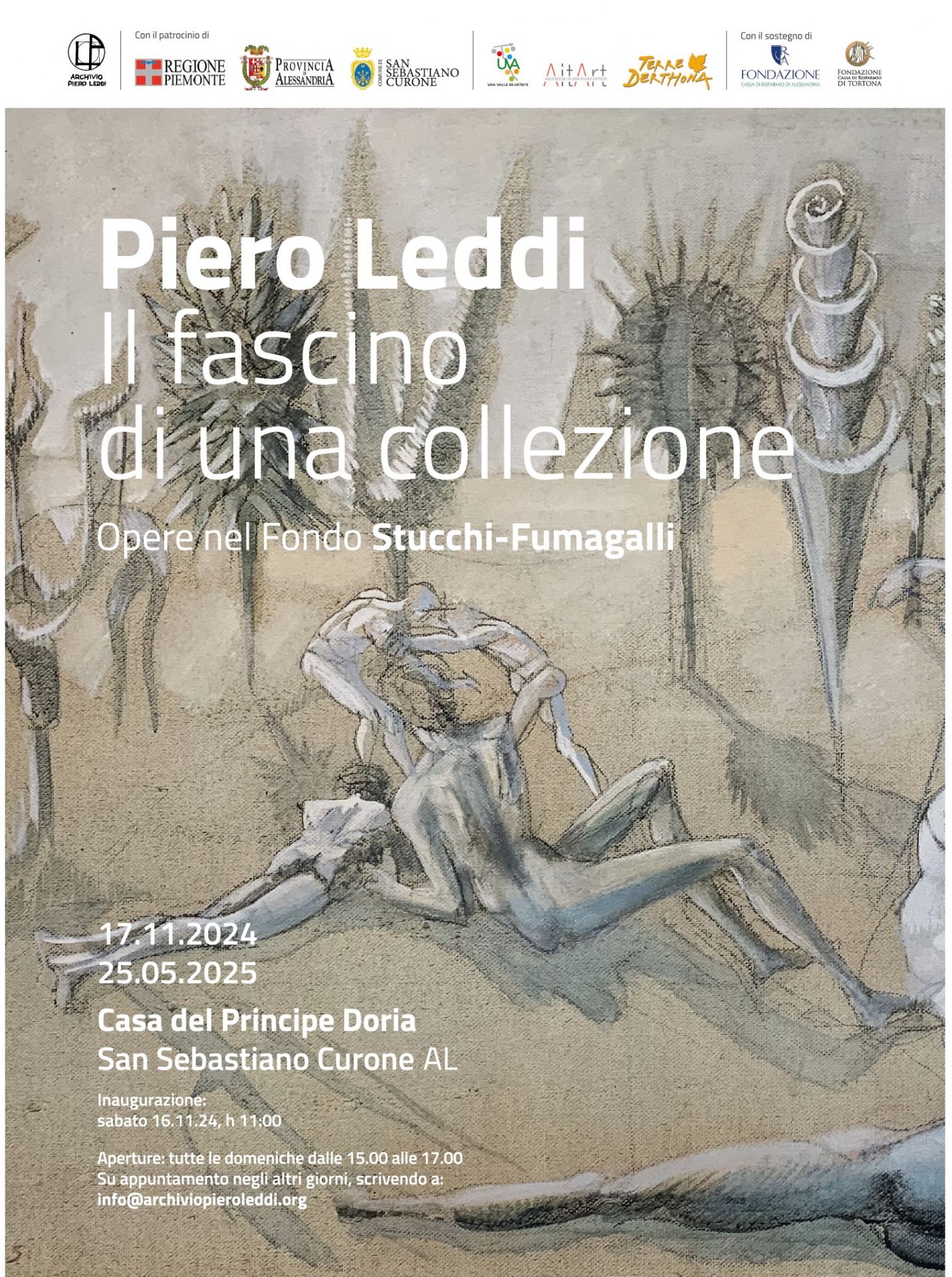 La mostra rientra nel progetto UVA, Una Valle di Artisti, polo museale diffuso lungo le vie del sale, è sostenuta da Fondazione Cassa di Risparmio di Tortona e Fondazione Cassa di Risparmio di Alessandria e vanta il Patrocinio di Regione Piemonte, Provincia di Alessandria, Comune di San Sebastiano, AITART e Terre Derthona.