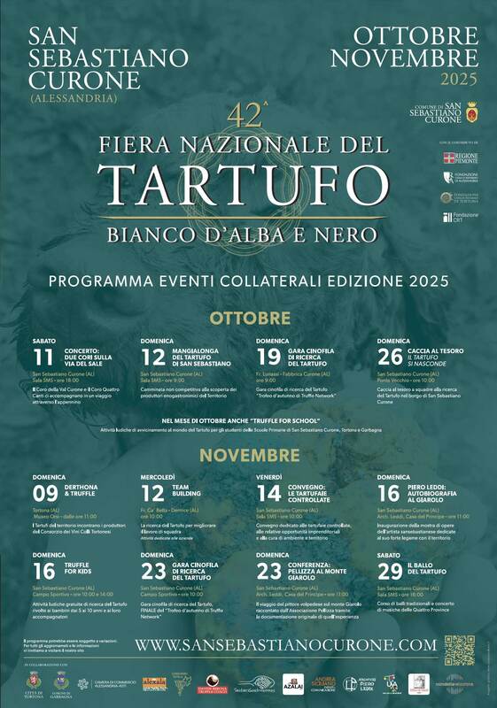 La Fiera Nazionale del Tartufo Bianco d'Alba e Nero si terrà come ogni anno a San Sebastiano Curone la terza e quarta domenica di Novembre e nel 2025 il 16 e 23 novembre.